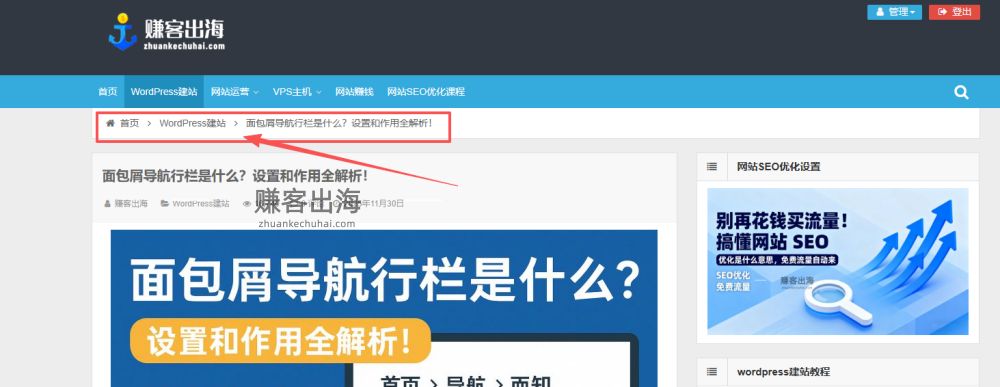 在 赚客出海 这类内容较多的站点上,面包屑导航基本是“标配”,不管是教程文章、工具推荐还是实战案例,用户一眼就能看到当前内容在整个站点结构里的位置。
