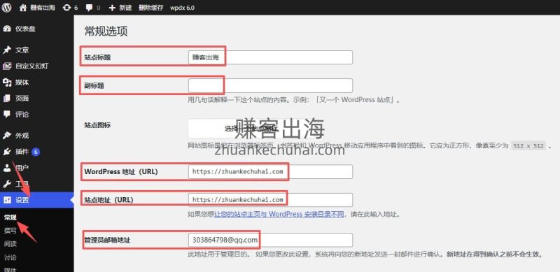 - 站点标题:网站的“大名”,比如“赚客出海”“XX工作室官网”,会显示在浏览器标签和首页顶部,以后能改