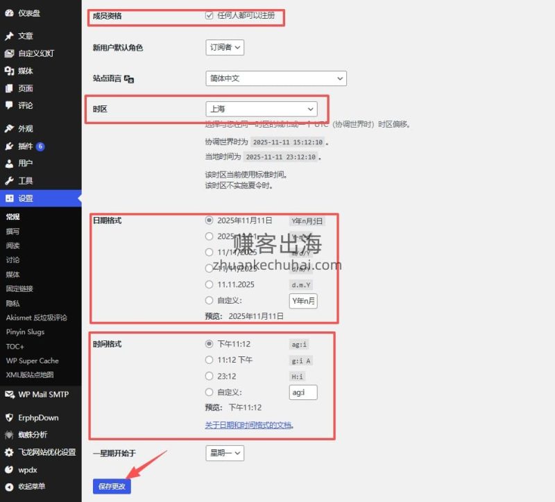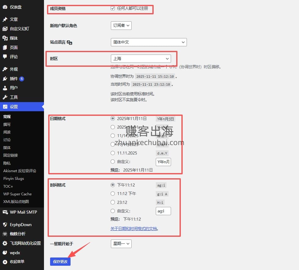 这是建站第一步,相当于给你的网站“填身份证信息”。进入后台,点击左侧【设置】→【常规】,跟着下面的步骤填就行,大部分保持默认,重点改这几项: