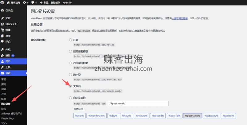 - 文章名:选择“文章名称”选项,URL会变成“你的域名/文章标题”,语义清晰,用户一看就知道内容,还利于SEO,这个以后我会详细给大家讲一下。
