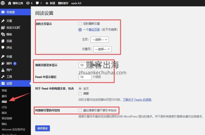 - 官网/企业站:选“静态页面”,然后在“首页”下拉框选你创建的“首页”,“文章页”选“博客”(需要先在【页面】→【添加新页面】创建这两个空白页面)