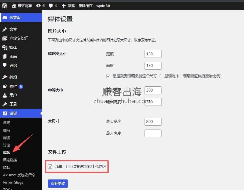 - 默认“按年/月组织上传文件”,保持开启就行,方便后期管理大量图片